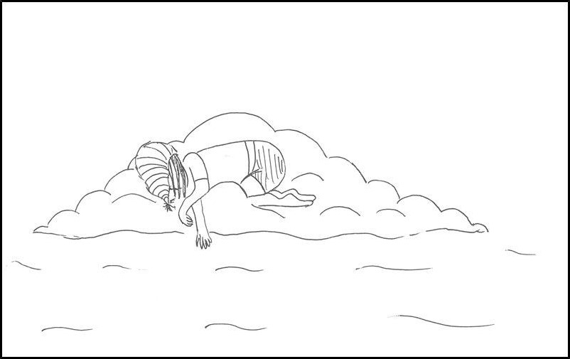 Plötzlich ruckelte es. Aliou schaute auf. Seine Wolke hatte sich an etwas langem, dünnem verfangen und hing fest. Was war das nur? …