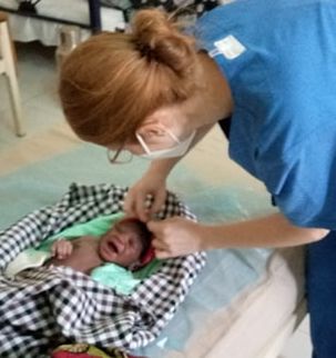 - Keine Patientenunterlage oder Lappen zum Waschen zur Hand? – PatientInnen liegen auch mal auf den Einmal-Plaste-Schürzen (die wir eigentlich als Selbstschutz zur Geburt anziehen) und heute wurde eine Babymütze als Waschlappen umfunktioniert.